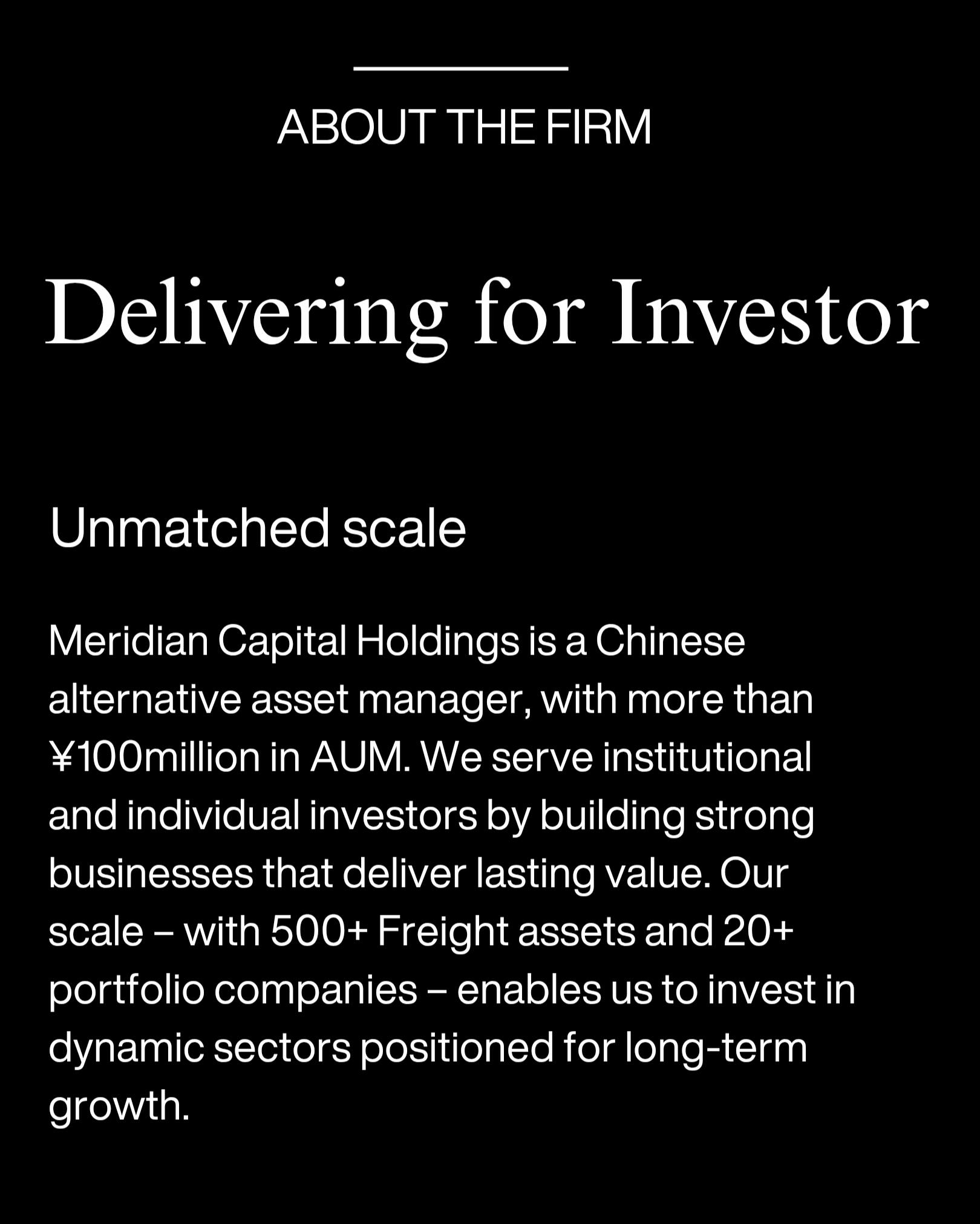 在 Meridian,我们将投资者资金投入到高速运转、资产支持的贸易周期中,以实现可预测的短期收益。